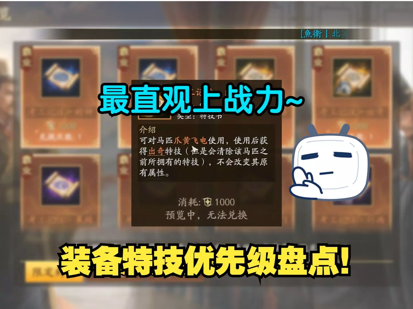 这是《三国志战略版》的非霸业封赏兑换推荐内容,展示了武圣、昭烈等多种需600功勋兑换的考工记注类道具,还分析了无双性价比高,北伐枪可按需选择,帮助玩家做兑换参考。