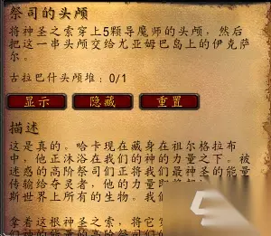 大锅前面的NPC【伊克萨尔】会给你腰带任务【祭司的头颅】,杀死祖格中的五个高阶祭司BOSS后捡取他们的头颅,再使用接任务时获得的道具【神圣之索】,即可获得任务道具【古拉巴什头颅堆】。把它交还给NPC【伊克萨尔】即可获得奖励腰带一条(布皮锁板四选一)