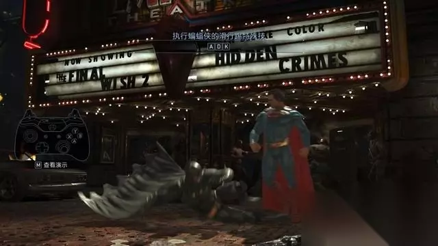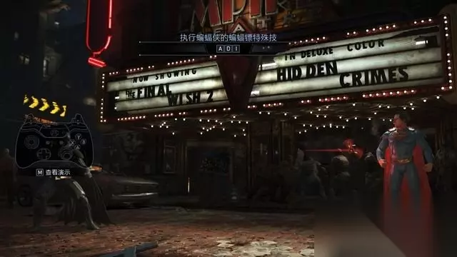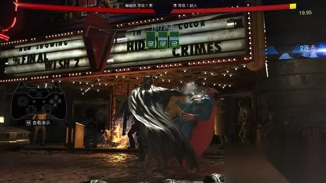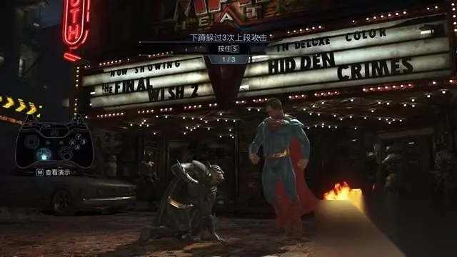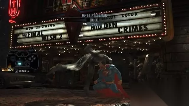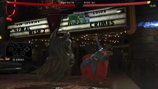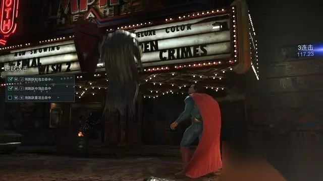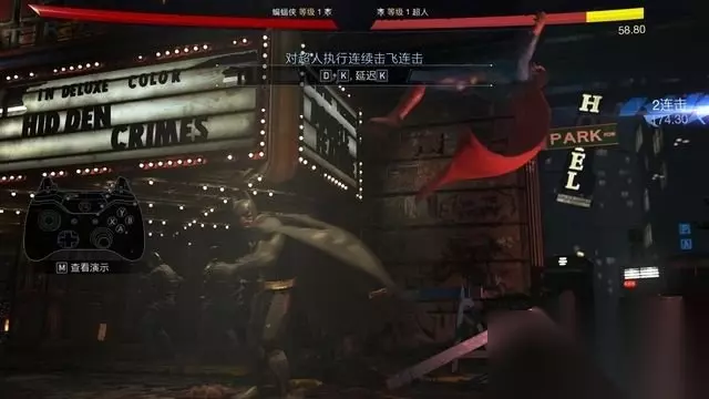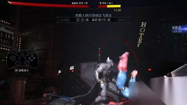 例如蝙蝠侠的基本连击,中击+中击+轻击。 按键方式很简单,只需要连续的将这三个键按出来就行。 你可以飞快的按压来完成,简直不需要节奏(按不好可以打开快速输入)。
