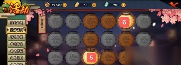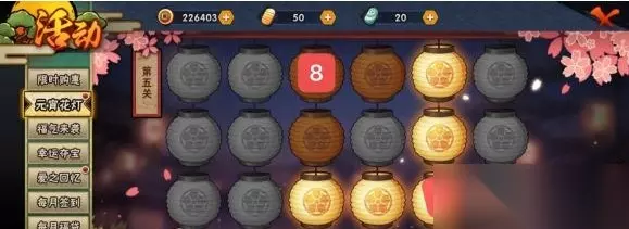 《火影忍者手游》元宵花灯我们应该怎么玩呢?这对于很多的玩家们来说也是十分严峻的事情的哦。 那么现在就让我们一起来看看元宵花灯的具体与玩法吧,希望可以在游戏中帮助到你们哦。 《火影忍者手游》元宵花灯攻略、 在下面我们会直接给出图片,我们去按照图片的顺序来将所有的关卡完成就可以啦。 当然每一个亮着的灯笼的地方也是固定的哦,所以我们只要将其保证全部覆盖就可以了,然后按照下面的顺序进行完成就可以了。 所以我们紧急你需要将两个单个的对角去点亮就可以啦。 第五关: 我们对角的话,所有点到其实技术的就可以啦,当然8各不同位置每个位置我们分三个,当然每个位置都是要点亮才是可以的哦。