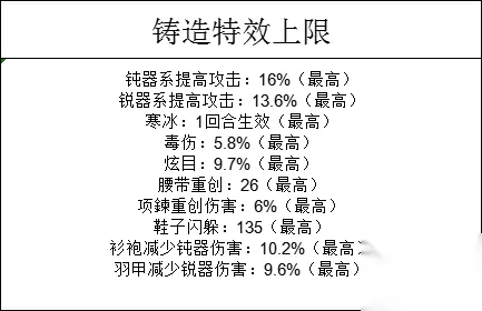 锐金石-刀剑枪 锋锐:百分比增加武器攻击 眩光玉-刀剑棍 眩目:几率使敌人攻击落空 砒霜粉-刀剑枪 附毒:攻击造成百分比毒液伤害 万年冰-枪拳腿 寒冰:几率固定回合数内冰冻敌人 千年陨铁-拳棍腿 重击:百分比增加武器攻击