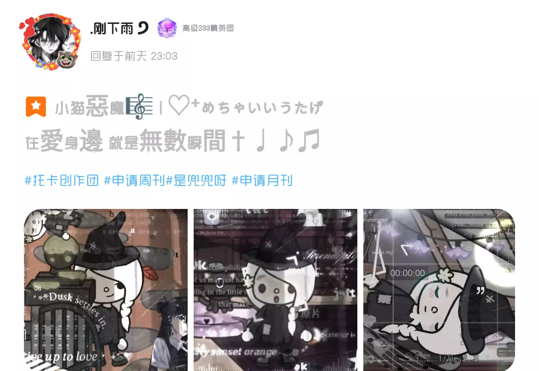 哈喽大家好我是淞栀耶耶。一晃一周时间匆匆而过,大家的创作水平越发高质,圈内的气氛也越发活跃,淞栀精心挑选了几个优秀作品,和我一起共同观赏本期周刊吧!