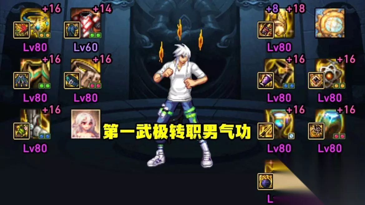 【一】第一武极转职男气功 第一武极一阵雨,全身增幅16、武器增幅18,一直把武极当大号培养,但是,每次职业平衡都不如意,技能形态也很垃圾,看到隔壁的男气功封神,一阵雨早就萌生了转职的念头。