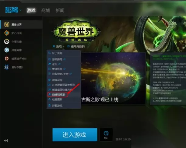 3、用战网客户端的修复功能进行修复。