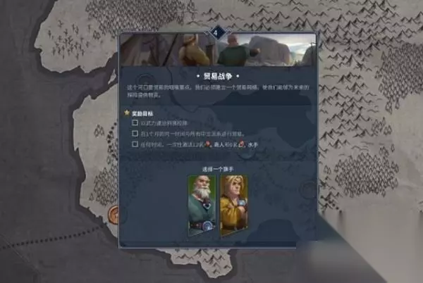 本次战役选羊和鹿都差不多,因为是场持久战,而持久战里羊和鹿都是适合新人的耐力型选手; 因为布兰德产假休的美滋滋,差点要了瑞哥老命,所以选鹿; 战斗任务和要点是快速建筑长船坞和灯塔,这样可以在初期钱比较少的情况下,先于丽芙开始累计商业影响值。 这个值显示在左上角名望旁边,任务栏则会显示进度条比拼。
