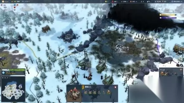 战争和金钱从来一家,打仗就有钱,有钱才能打仗; 建议矿产够了先升级武器和兵营,四处出征名望也涨的快,名望够了又有奖励资源; 因为双探子,地图开的快,有矿就挖有废墟就搜刮; 地图最左边有两个女武神把守四个铁矿,她们下面一头熊守着一个废墟,都是大财; 只要兵营武器升了级,三四人的小队可以完胜。
