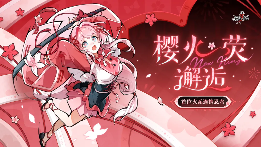 樱火灼灼,流焰辉映,「樱火·荧」的忍术技能【炽焰明花】中结合了樱花与焰火元素,技能释放时,花瓣与焰火漫天交织,打造出绚烂而夺目的战场效果。