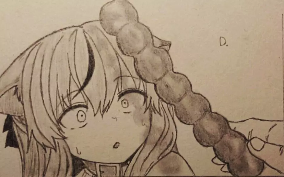 这是一篇手绘分享帖,作者分享了从草图到线稿的兽耳少女手绘过程,虽标题提及火柴人,但实际展示的是精致的二次元兽耳少女手绘,包含完整的角色线稿绘制步骤。