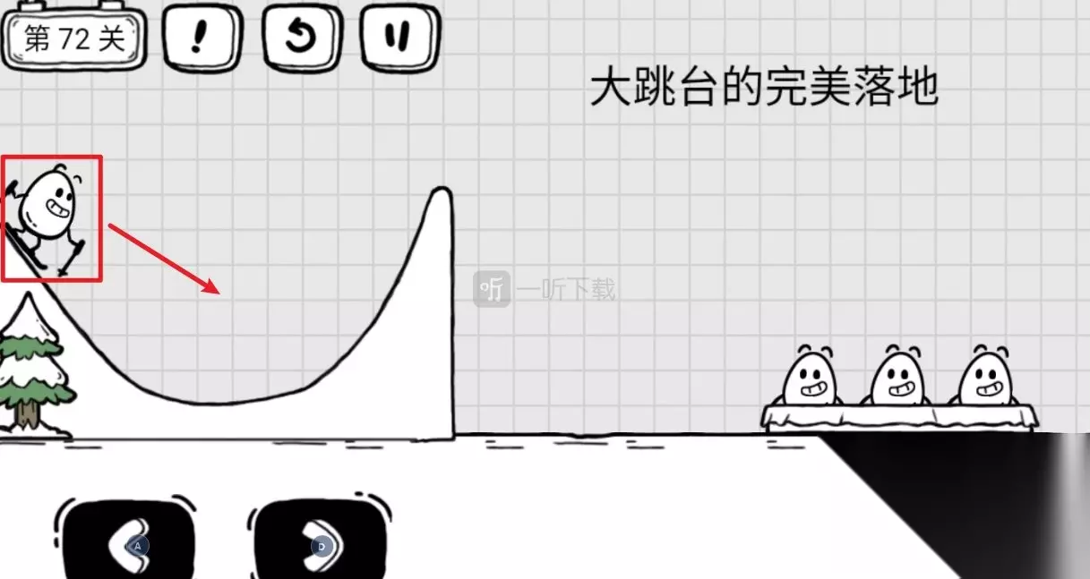 t15_2-t15_1:4.0 茶叶蛋大冒险第72关为大跳台的完美落地,这一关茶叶蛋在空中飞了很久后会摔在地上,并不是完美落地,怎么让茶叶蛋不摔到地上就是这关的关键了。 茶叶蛋大冒险第72关攻略 89.让茶叶蛋先滑起来,在茶叶蛋快要落地的时候,如图所示,将评委的台子向左移,移到合适位置,茶叶蛋就能完美的落在台子上。 89 89.1