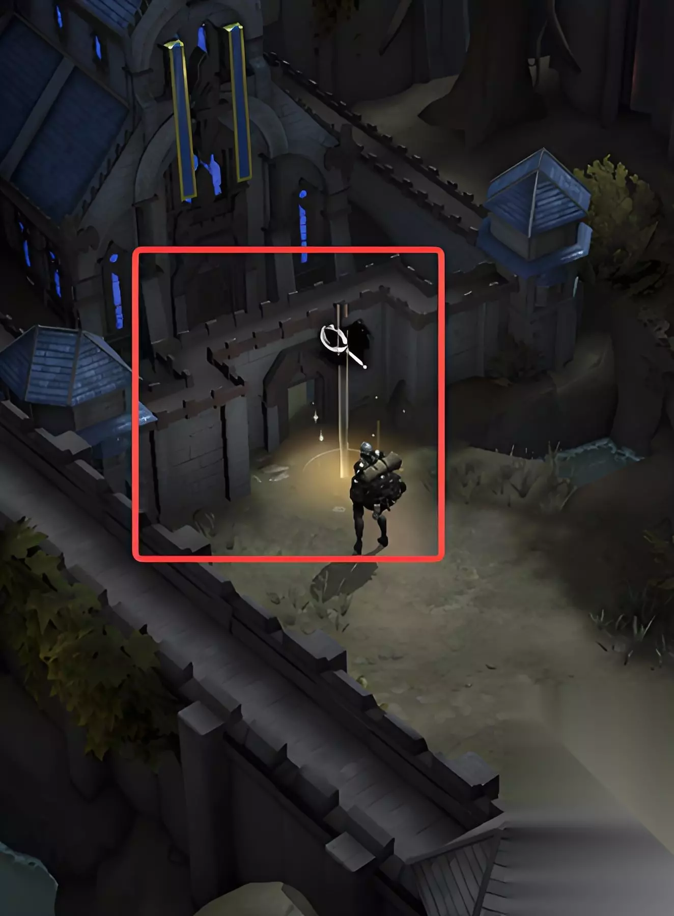 需要解锁这两个雕像,这两座雕像的解锁条件为魔力和敏捷属性大于450,达成条件完成所有的雕像的解锁后,需要来到城堡大门所在区域打开大门,然后再里面去找到一闪可以对话的小门,需要与小门进行对话。