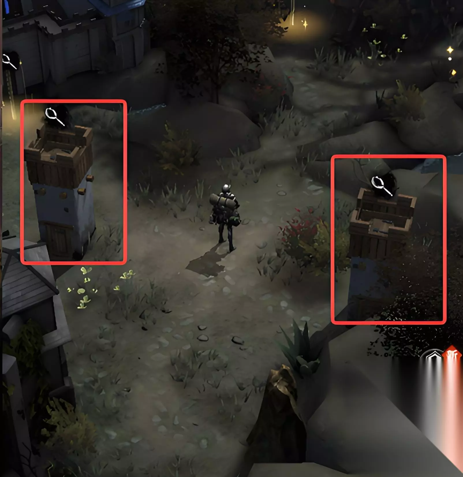 在这里可以看到一位叫做小赫尔的角色,需要与其对话让其吹响号角之后可以拿到第一个收集物,之后需要来到塔楼旁边摧毁两座塔楼,完成后就能拿到第二个收集物了,最后需要需要前往城区右下角位置,然后再这里击败兜帽修士,这么一来就可以拿到最后一个收集物了。