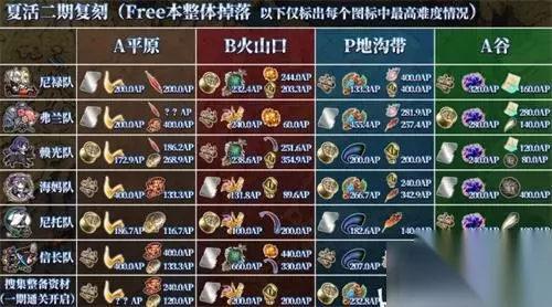 fgo夏日泳装二期能掉落什么材料?不同关卡掉落情况不同,大家在需要某种材料的时候,可以提前了解下关卡的掉落情况,这样也能更好的蝴蝶想要的材料,今天分享的是夏日泳装二期商店兑换以及材料掉落情况的详情介绍。 fgo夏日泳装二期商店兑换素材掉落一览 商店兑换 本期搬商店我分为一二两部分别说明。 复刻进行了减压还是好评的。 搬空第一部共需9900个车轮,8400块钛板以及7300颗螺丝,兑换列表如图。