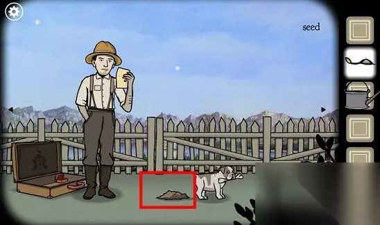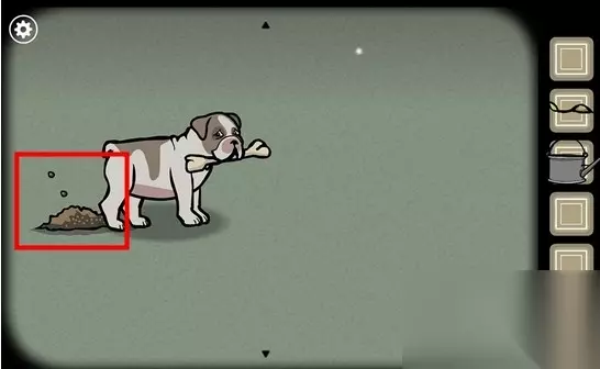 6、点击小狗,把骨头给他,他会开始刨坑,这样就形成一个土坑