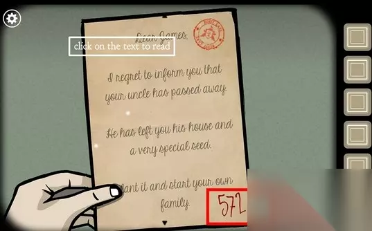 2、点击男人胸前口袋的信,发开后发现右下角有3位数字:572