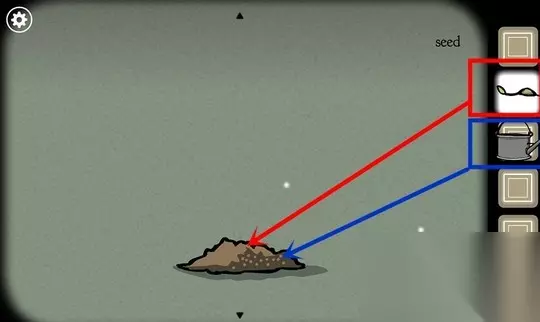 7、点击土坑,埋下种子,浇水后,多次点击种子,会变成小树苗