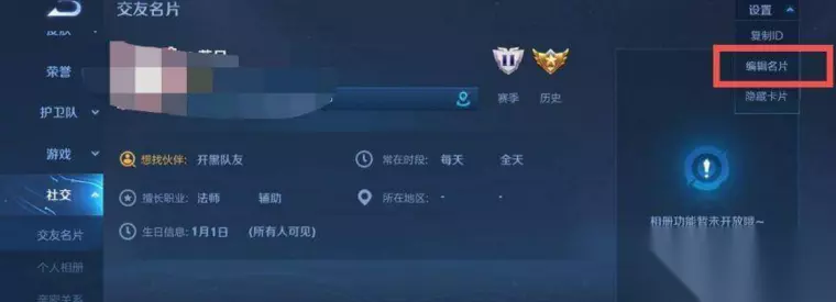 4、点击编辑名片