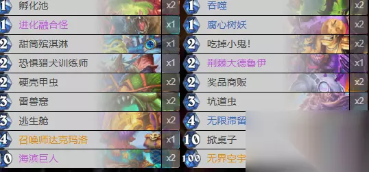 硬壳甲虫也可以用防护水晶来代替。 本套卡组的启动还是比较简单的,融合怪+奖品商贩+叠甲+逃生舱,最后用空宇将这些随从都消灭,此时再下大德鲁伊就可以获得本回合的所有亡语,并且洗入牌库的大德鲁伊还会继承亡语。 第二个回合用召唤师+大德鲁伊,一回合就能叠很多甲。 总结 无限爆牌叠甲术的玩法还是比较有意思的,一旦启动了,除非对手有基尔加丹,不然对手一回合就能被爆牌爆死。 不过要是对手是蛆dk就有点危险了,虽然说几回合能有万甲,但是也防不住水蛭的吸血。