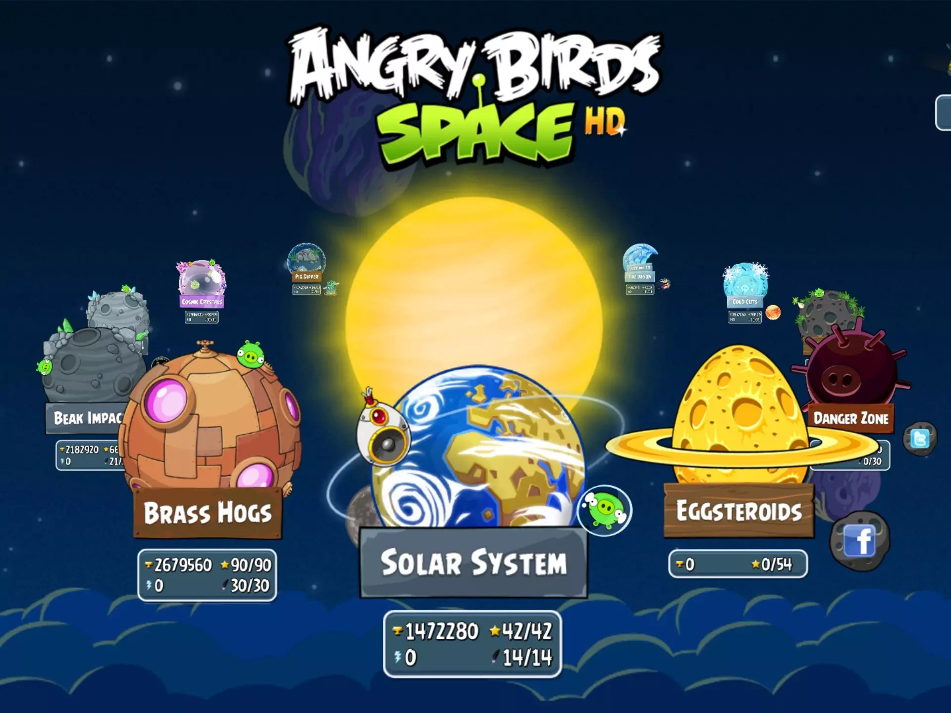 最后一个镜像章节了,难度中等或偏上,恶心关比主世界是只多不少,M9-7八分钟,先是直接打tnt试了几分钟,发现过不了后改成打最上面煤气罐,可以一鸟过,但分数线非常极限,这方块撞到星球上还有可能卡住不碎,M9-17十二分钟,只有一个炸弹黑炸面前的石墙,上面的猪很容易不死,而且石头清不干净乱飞会阻挡发射,分数线高而且二星三星差距有点大,126000和132000都是二星,不过这也是太空版最后一次出现这种设计了,可喜可贺,M9-27十分钟,好消息强行拖时间直接删了,坏消息难点没有消失而是换成了超高三星线和运气,想三星应该是必须要一鸟干掉右边星球右和上的建筑里的猪,概率很明显不高,最后M9-30,全镜像最终关中最像boss战的一个,其实是因为这个boss原版就够敷衍了,镜像拿原版改的,布局更复杂了,用时10分钟,开局打最右上面那个猪顺带清方块,注意不要打到按钮,不然他直接给你堵门,但是不打到按钮想清更多方块就很难,还有中间圈内这个猪也得顺带清点方块,三星线极限,应该是六万整,作为全太空版的最终关,难度属于是给我气笑了 现在太空版最新版本的所有关卡算是打完了,但是别急,在某个特定版本还有一个限定关卡,请看下集太空版特别篇(请勿剧透)