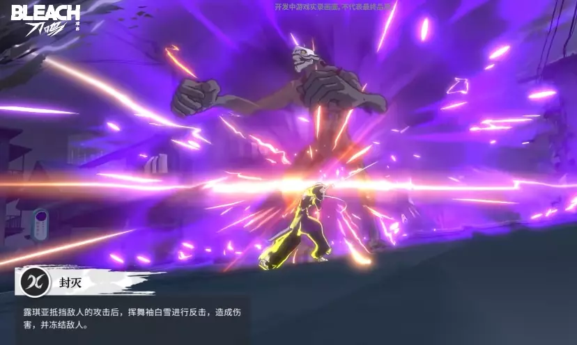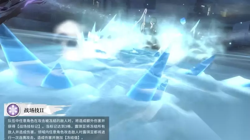 战技2则将团队协作的优势发挥出来,队伍中的任意队友只要攻击的目标身上原来有冻结效果在生效,那么收到的这一次攻击还有额外的数值增加百分比,且输出后还会继续给该目标进行标记,这个标记就类似于累计的负面效果,随着战斗的持续进行当标记累计达到3格时,她会直接施展强大的魔法力量,将所有的敌人都冻结起来,而在她所创造的这片冰雪领域中,任意的队友发动攻击时,她都能迅速做出反应,进行一次连携攻击,攻击过后,还会继续为敌人添加冻结值,所以从这里大家就可以看出来其实朽木露琪亚的对战当中这个冻结设定才是最重要的。