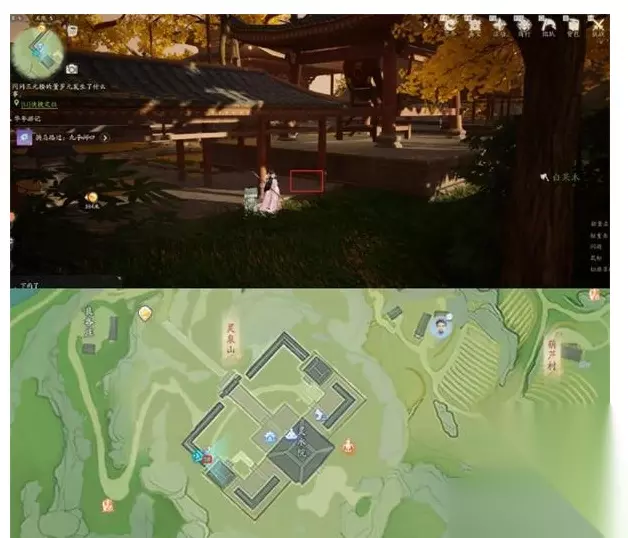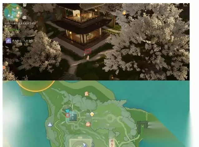 10. 第八张藏宝图: 装备藏宝图八,进入文靖书院内,宝藏的具体位置可以参考上方的鸟瞰图。
