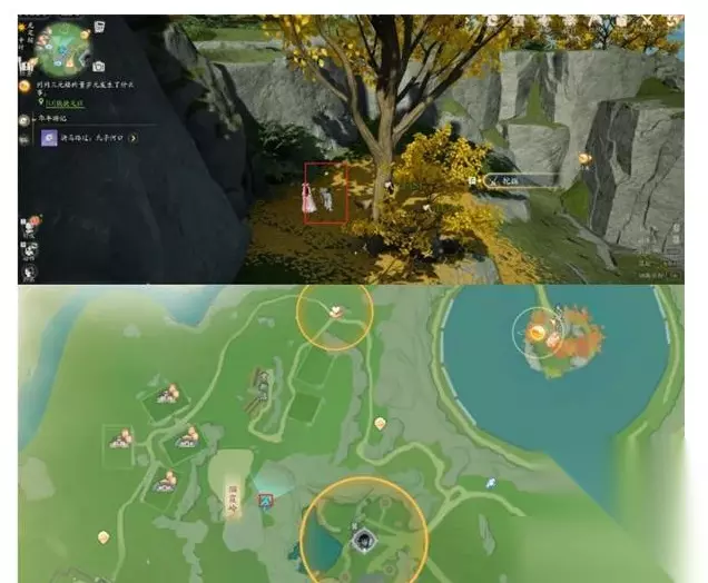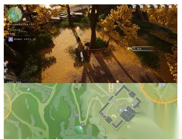 4. 第四张藏宝图: 装备藏宝图四,目的地是燕霞领的右侧,那里有一棵银杏树,宝藏就在树边。