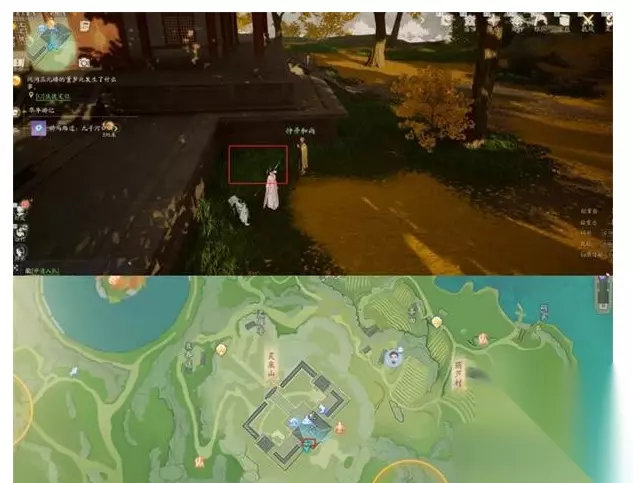 11. 第九张藏宝图: 携带藏宝图九,来到见春停的左侧,沿着石子路挖掘,具体位置可以参考鸟瞰图。