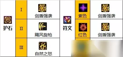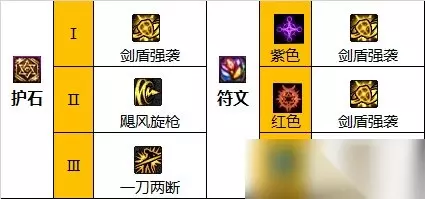 护石搭配二 护石:剑盾强袭、飓风旋枪、一刀两断 符文:九保剑盾强袭