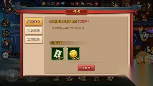 【玩法讲解】 从游戏界面上看,游戏中的玩法可以分为四个部分,分别是任务剧情、冒险玩法、活动任务、个人培养 【任务剧情】 任务剧情主要分为两类,一类是主线任务,一类是日常任务。主线任务又分为主线剧情任务和冒险奖励,主线剧情任务就是整个游戏的剧情进展,也是我们升级的主要经验来源,我们通关副本,解锁功能,等等,都是和主线剧情任务相关联的。而冒险奖励任务,则是一个指标达成型任务,比如战力达到多少万、等级达到多少级、拥有几个宠物等等达成了就可以领取奖励,不达成也不影响你游戏的进程。