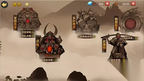 3、各冒险玩法简介: 精英副本:获得宠物进阶和进化材料。 宠物寻宝:获得宠物升级和进化的材料,捣乱其他玩家的宠物寻宝可以获得捣乱奖励。 试炼:挑战者的炼狱,里面留下了大量的挑战者的武器装备和材料,只要你能坚持到最后,它们就归你了。 实时竞技:和其他玩家实时匹配对战,获得竞技积分兑换物品,对战胜利后竞技段位可以提升。 武道榜:挑战并战胜其他玩家可提升自己的武道排名,刷新自己的排名记录可以获得直接钻石奖励,保持排名则能获得稳定的每日钻石奖励。 跑酷副本:获得大量的金币和冒险币。 幻境:挑战的层数越高,代表玩家实力越强。 世界首领:每天20: 20点开始,奖励丰厚。 组队副本:和其他小伙伴一起打小怪物。 锁链妖塔:掉落大量的符文和经验符文。