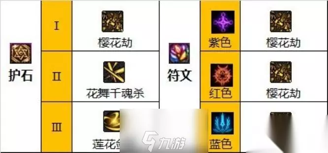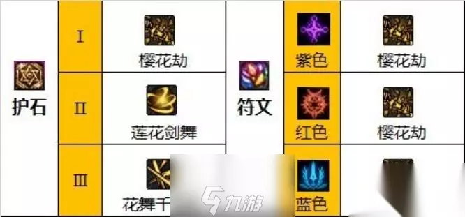 第二种 胜负之役武器(放弃花舞则选湮烈掌)护石选择。 护石:樱花劫、莲花剑舞、花舞千魂杀。 符文:九保樱花劫。
