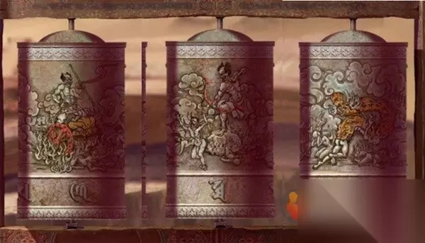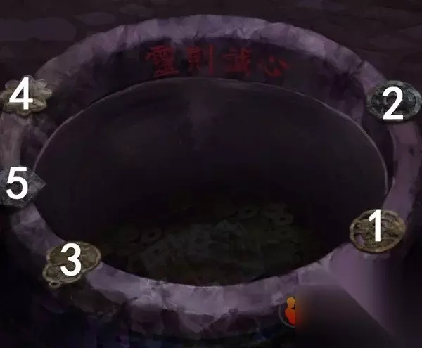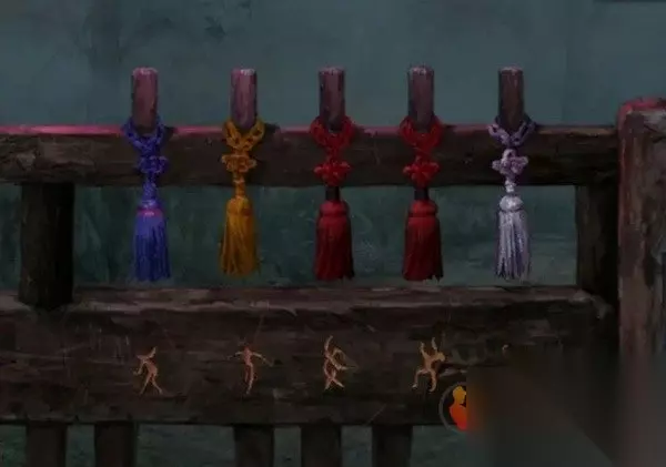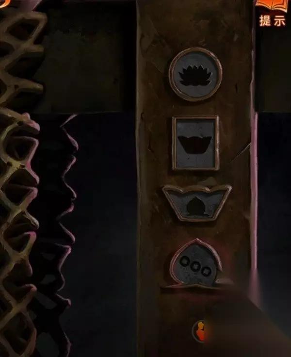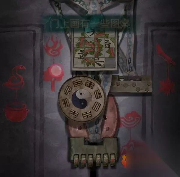 剧情过后拿走水缸旁边的花钱,右边倒吊人手里拿到有孔的卡片,左边有一串图案记一下,是从下往上的窗花-圆形-葫芦-小花-五边形,查看左边的柜子,从唱片机上拿到五枚纸钱,对中间水缸使用纸钱后按照右边门上的顺序依次点击纸钱,五枚纸钱扔完小高能注意,后退一下就发现门开了,进入菩萨房间。