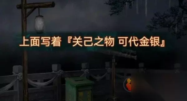 查看一下左边的龟壳拿到一个平安福,中间位置的箱子提示要关己之物,那我拿到的下下签也是我的东西,所以扔进去,红灯亮起后查看右边的望远镜,剧情过后可以看到左边乐器行上的数字552472记下来。