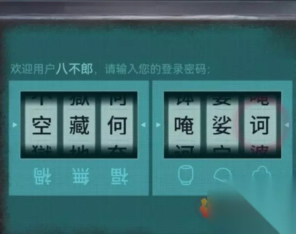 记好后发现又获得了新的线索,扇子对应的是娑字,云朵对应的是诃字,灯笼对应的是唵字,都是些生僻字啊!这个密码和前面菩萨后面的密码就没有关系了,记得分开记录,我们点击舞台后面的大屏幕会导致屏幕左移,露出来的右边位置有个纸人机,查看一下发现需要六个密码,我们现在只有一半。