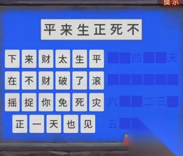 那么我们就能获得线索4=正,6=不,2=来,3=生,5=死,1=平,所以我们按照顺序排列一下就是平来生正死不,找一下这几个字输入后可以查看三生,这里今生会有剧情,不过这不影响我们掏出小卡片,将三生所有出现在框框中的文字都给记录下来。