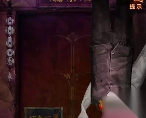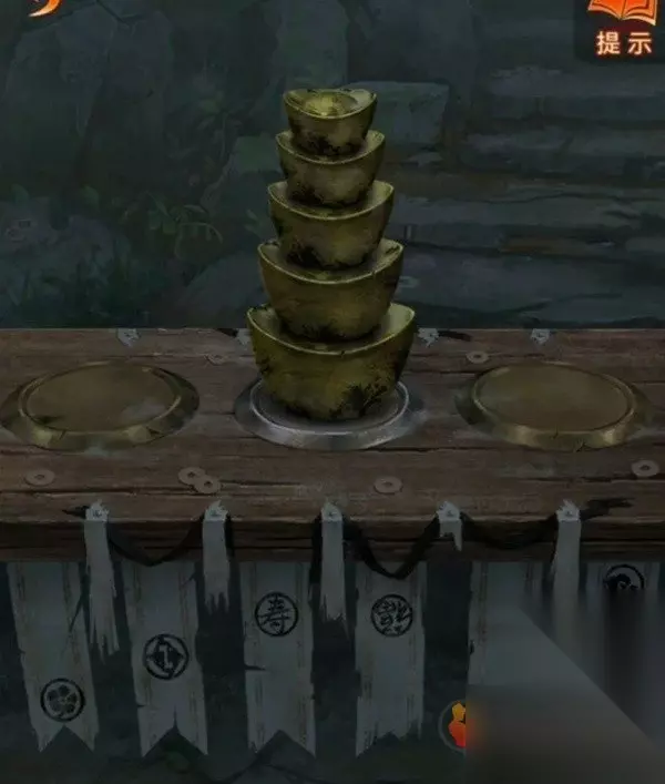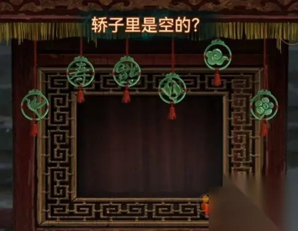 先查看一下轿子不让掀开帘子,那查看一下左边的桌子,使用金元宝后玩一个叠叠乐小游戏,将所有元宝都移动到中间画有元宝图案的地方,完成后下面布条打开,观察一下布条大概是有四种高度的,最高的是云,第二高的是福寿,第三高的是1,最下面的是花鸟,记下来再次查看花轿调整到同高度。