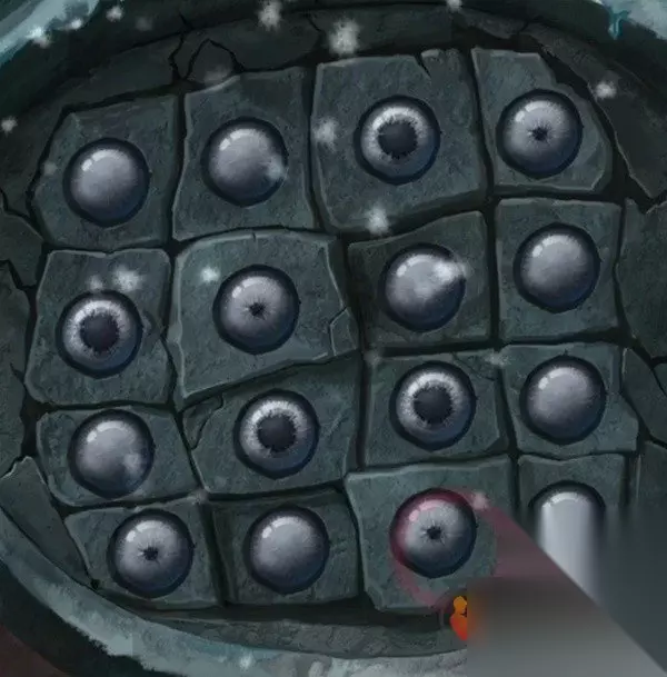 小高能过后电视上的眼睛是有两种形态的,大瞳孔和小瞳孔,眼睛位置也是会变化的,这里就把两张图合在一起吧,大概就是第一行3大4小,第二行1大2小,第三行2大3大,第四行1小3小,记好后就可以后退一下来到冰雪世界,查看右边墙上的机关开始调整了。