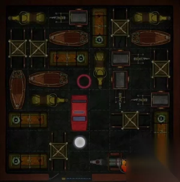 回到左边场景,对停车场的小门使用车钥匙就能玩移车游戏阴间版了,注意所有车都是只能前后移动,我们的目标就是把显眼包红车移动到下面的停车场门口,大概移动到这样子就能开门了,等红车出来后退一下,从停车位的红车伸出的手里拿到钥匙和手串。
