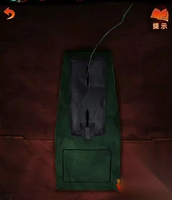 先回去确认一下手机上无常喜纸钱的样式,然后点击右边桌子上的黄纸,点击变更图案后选择需要裁剪的位置,点击裁剪后就能获得无常喜纸钱了,查看右边的柜子,点击柜子下面位置发现有一条裂缝,对裂缝使用铁丝后获得十字花螺丝刀,不是,十字花法器。