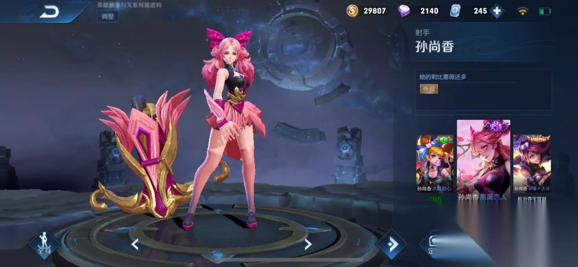 2、孙尚香-蔷薇恋人 和上面的高渐离相反,孙尚香是人气英雄,有着各种气质的帅气皮肤,所以这套孙尚香-蔷薇恋人应该不会逊色,颜值也相当高。