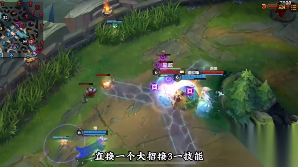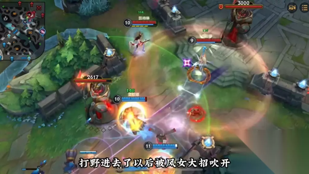 在这里,我们抢了二级,并使用疾跑配合ad将石头人击败。 在上一把游戏中,我们使用了一名近战英雄作为辅助。现在,我们来看看这一把游戏中使用了锤石这名远程英雄作为辅助。在这里,虽然我们在一级时进行了压制,但由于靠近时会受到攻击,因此我们不敢过于靠近。在这种情况下,即使我们进行压制,我们也不会吃亏,因为我们的血量仍然可以保持稳定。