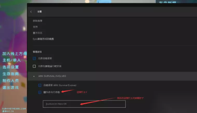 1、从Epic客户端的左下角选择设置; 2、然后下拉到最下面、找到辐射3年度版然后把额外命令行打上√; 3、输入-culture=zh-Hans-CN这个代码就是中文了。