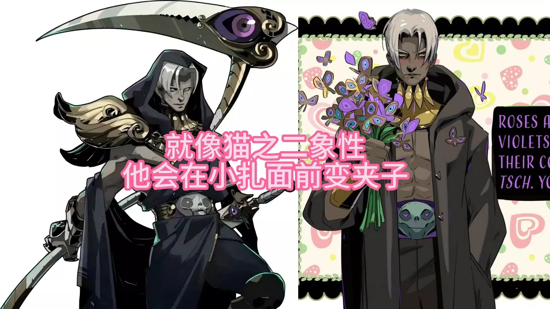 这是游戏《Hades》的相关内容,展示了冥府王子扎格列欧斯和死神塔纳托斯的对话,扎格列欧斯用夸赞对方变化的套路互动,帖子还提到他用同样套路撩忒修斯,体现扎格列欧斯爱长发的相关趣味剧情。