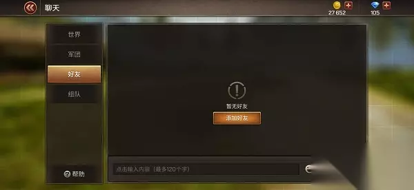 3.好友频道 好友频道5级解锁,聊天内容仅自己和选中的单个玩家可见。好友频道是针对单个玩家进行交流沟通的场所。 如果未解锁好友功能,则无法与好友进行聊天。如果已解锁好友功能但无好友,【好友频道】界面会提示添加好友。