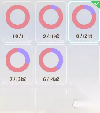 6力4耐或者8力2耐,具体可以根据自己的属性去调整,该加点只适合pvp中用,而且这个加点得搭配装备洗练力耐使用,属于保守打法不易被击杀导致层数被清,缺点是110级之后此加点用处不大