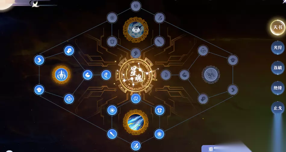 6天书选择 神将天道推荐光狩+止戈,能够将自身输出最大化,星魂选择左边(星魂110级开放)