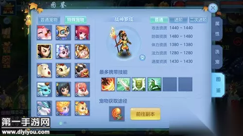 战神罗成 属性资质 攻击资质:1440-1440 防御资质:1480-1480 体力资质:1380-1380 法力资质:1280-1280 速度资质:1430-1430 最多携带技能 逆击:如果目标有祝福类状态,则对其伤害结果增加10%,攻击本回合未出手的单位则伤害结果增加5% 高级反击:受物理攻击时,30%几率使用普通物理攻击反击对方 高级防御:增加自身等级×0.8的防御力 高级勇敢:不会逃跑,不受恐惧效果影响;夜间不减弱战斗能力。 宠物获取途径 罗成战魂×20,兑换和进修战神罗成的必须材料。集齐20个使用可兑换战神罗成,第一次进修增加各项资质20点,第二次进修增加各项资质30点。