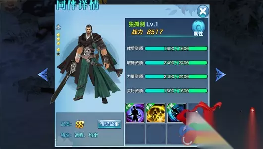 1.逍遥属性为木,被天王克制,因此玩家应尽量选取火属性的高爆发同伴。 2.逍遥突进能力很强,能够优先击伤敌人,选择个性技能为狡诈、果敢、精明(前两者优先攻击血量少的人,后者优先攻击角色攻击的目标)的同伴能够让我们选择集火的目标优先击杀。增加了战场的可控性。 3.护主技能最好是提升逍遥伤害的类型,尤其是天火琉璃步,能够放大逍遥的刺杀能力。 SS级同伴:此等级只有三个而且获得难度较大,其次,其中功能性比较全的独孤剑大叔才是我们的好基友。范围性的减伤,木系以及全系抗性的提升,会心免伤更是锦上添花。最重要的是基础属性高!2400的力量最高上限,这等高额的伤害配合土属性,让我们在面对峨嵋时能够轻松的将其斩杀! 逍遥刷图加点
