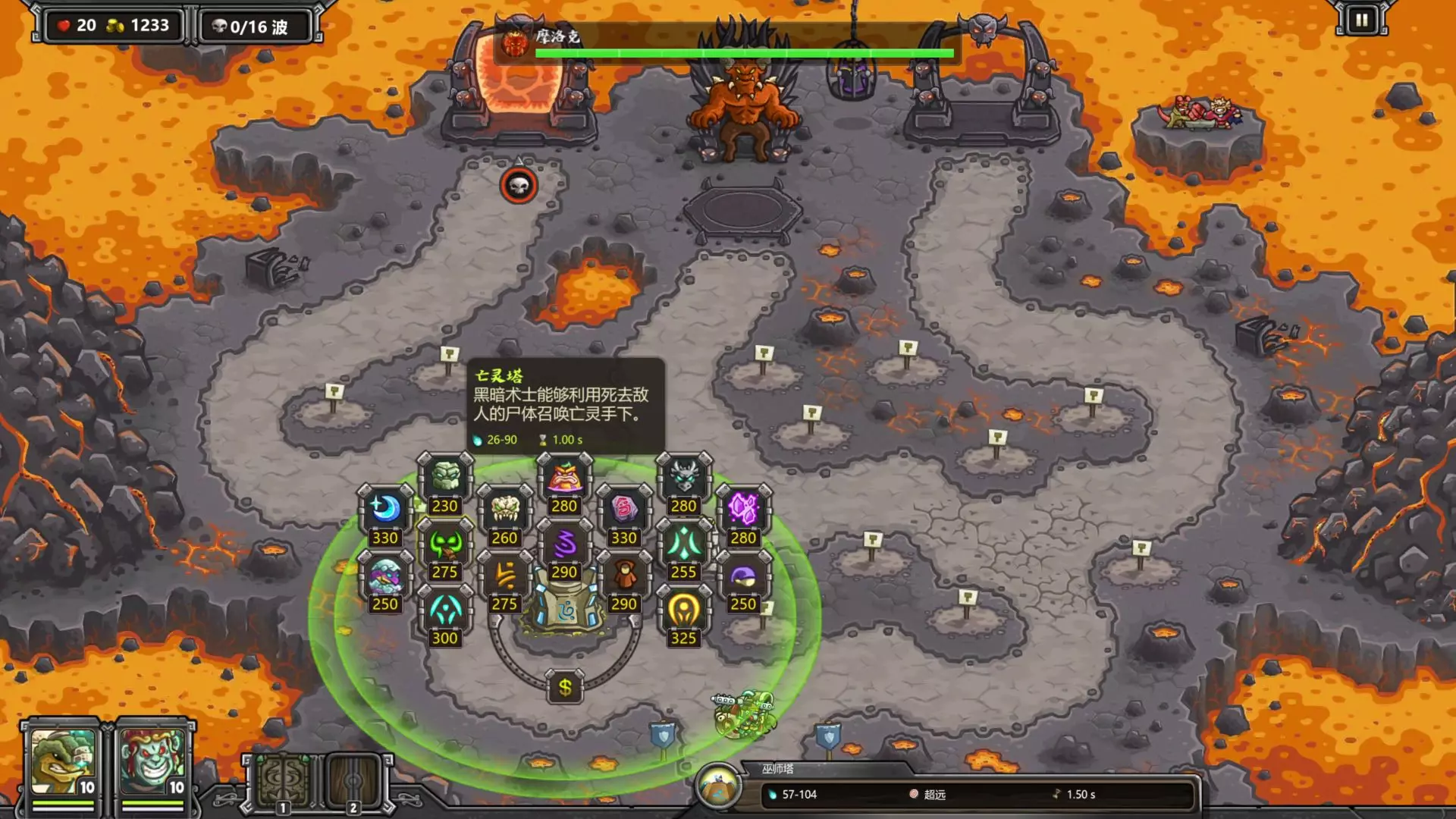 这是《王国保卫战》的万魔殿关卡挑战内容,展示了使用鬼侍搭配七火枪的通关布局与打法,包含第十波前不升级狙击、分路拦截怪物等通关技巧,完成了高难度的关卡挑战。