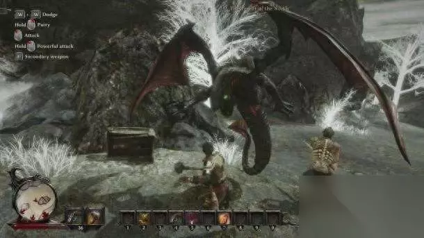 相比前作,游戏里的配音阵容则是大大削弱了,要知道崛起1中可是邀请了Andy Serkis和Lena Headey这样的专业配音师。经过实测,游戏里语言对话的表现确实不如以前,虽说对主角还算照顾,但配角的配音质量和前作有着明显差距。 崛起3算是一个正统的RPG游戏,无论在收集,角色升级培养和制作功能上,都有着那套成熟的设定。游戏里的主角可以使用近战和远程武器,同时也加入了投射和增益类法术。 游戏的战斗设计很奇葩,大多数怪物都会后退步,挥砍时扑空的几率很高。这一点既不像老滚也不像哥特,到是有点刺客信条的味道,终结时还来一段华丽的必杀技。但悲剧的是,游戏里的人物动作十分别扭和生硬,远没刺客信条的流畅度(更别提打击感了)。