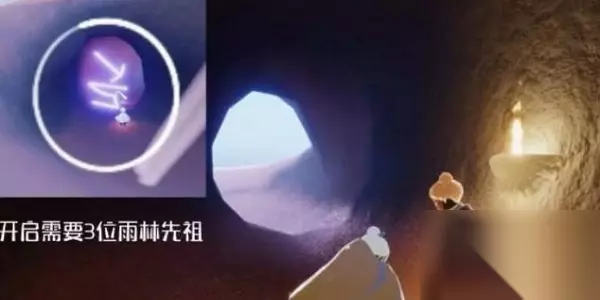 3、开洞穴的【屏障门】后即可点燃先祖石像,玩家需要运火接背背先祖。